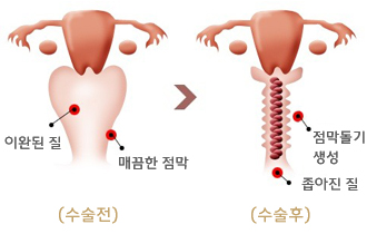 이 때 레이저질성형을 통해 질타이트닝효과로 질수축력을 복원하여 줍니다.